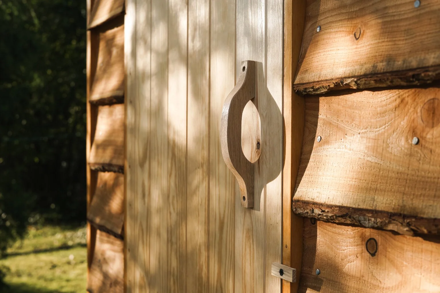 All the final details were important; these were the bits that I hoped would elevate the structure from shed to cabin. The door latches and handles were hand made from oak, and the steps from pine offcuts. I made the folding desk from solid ash slabs from a tree cut last winter and the small shelves from leftover bits of larch. The very last of the offcuts were made into a log storage box and what we couldn’t use ended up as kindling.